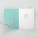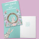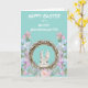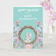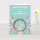 Um coelho fofo espreita de uma coroa rodeada por flores cor-de-rosa e lavanda da primavera. O texto "Feliz Páscoa para uma Querida Netinha" está em branco no topo. A imagem e o texto estão colocados sobre um fundo cor-de-teal pastel de primavera. O interior do cartão tem outra imagem fofa do coelho, e o seu texto personalizado na mesma cor teal. Todo o texto pode ser facilmente alterado, por isso é um cartão maravilhoso para enviar a uma neta, uma sobrinha ou uma filha.