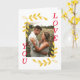 Este cartão do Dia dos Namorados apresenta uma coroa de folhas douradas com uma foto e tipografia vermelha "Eu te amo" em um fundo branco. Você pode personalizar facilmente o texto dentro do cartão ou simplesmente excluí-lo.