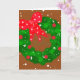 Um design de feriado com uma coroa moderna em tons de verde com bolas vermelhas decorando-a, além de um laço vermelho. A neve está caindo e cobrindo as decorações. Personalize conforme desejado.