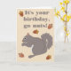 Quer amem esquilos ou estejam fartos destes animais sempre a invadir o alimentador de pássaros, vão ter um pontapé neste cartão de aniversário de esquilo fofo. Ele apresenta uma ilustração fofinha de um esquilo de cinza e algumas bolotas e a mensagem "É seu aniversário, vão loucos!" na frente. A dentro deste cartão de saudação está pronta para a sua própria mensagem personalizada.
