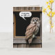 Coruja-de-barro com óculos pretos enquadrados na janela do celeiro rústico durante 50 anos