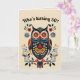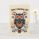 Este belo cartão apresenta uma ilustração de arte popular de uma coruja e flores com uma mensagem editável acima dela. No interior há uma mensagem editável. Você pode usar isto como um cartão de aniversário ou como um cartão para qualquer ocasião. Você pode alterar as mensagens ou excluí-las para criar um cartão em branco. Você também pode alterar as cores do fundo no interior e no verso. Este cartão pode ser usado como um cartão de "pensando em você", cartão de desculpas, cartão de agradecimento, cartão de aniversário, etc. Crédito artístico: Lynda McDaniel-Smith.