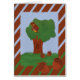 Cartão Coruja e uma Arte de Cartoon Whimsical de Oak Tree