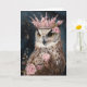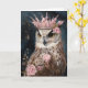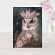 Uma coruja em uma coroa com flores cor-de-rosa para todas as ocasiões cartão de saudação em branco por dentro