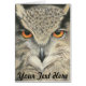 Um lápis colorido e desenho de caneta de uma Coruja Excelente Coroa Coroa com olhos laranja perfurantes.