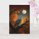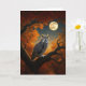 Uma coruja excelente corada em uma árvore no outono sob a luz de uma lua de cheio.