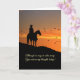 Imagem ocidental de um cowboy e cavalo no campo. O sol se põe atrás deles enquanto os pássaros voam para se reerguer. Uma imagem pensativa para que alguém saiba que você está pensando neles. Pode também alterar a redação deste texto.