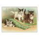 Ilustração do vintage de um jogo de três gatinhos. Um está sob o tapete que espreita para fora.