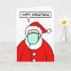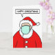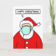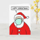Um desenho do Pai Natal vestindo uma máscara facial e dizendo "Feliz Natal". A imagem é definida sobre um fundo branco nítido.