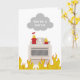 Ilustração de um fogão em chamas com nuvem de fumaça que diz "HOTTIE" com chamas na parte inferior.