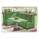 Faça uma viagem de volta às anos 50 com esta visão numa cozinha típica com uma cabine verde almofadada