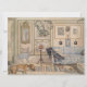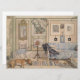Esta imagem apresenta uma trabalho de arte do pintor sueco Carl Larsson (1853-1919), que era membro do movimento Artes e Artesanatos. A imagem mostra uma elegante cena doméstica em uma sala de estar de na moda; um cachorro está dormindo tranquilamente no tapete, ao lado de um sofá listrado azul e branco. A pintura original foi completada em 1894.