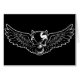 Crânio voado com chifres do diabo e sorrir forçadamente mau. Disponível em b/w e/ou em preto/laranja. Os t-shirt, suam, cartões, presentes.