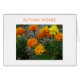 A fotografia floral da natureza, dos cravos-de-defunto em matiz brilhantes, e um cumprimento do outono decoram este cartão