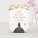 This elegant and glamorous birthday card can be personalized with a name or title such as daughter, granddaughter, niece, friend etc. The design features a beautiful princess with dark hair and dark skin in a black ball gown. The text combines handwritten script and modern sans serif fonts for a classy and sophisticated look. The floral arrangements, butterflies and gold confetti create the perfect blend of rustic and chic.