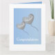 Cartão azul de parabéns de Natal para pais com gêmeos bebês. A design mostra balões em forma de coração no céu. Cada balão pode ser personalizado para os nomes dos gêmeos e mensagens que o dentro também pode ser personalizado. Um cartão extra moderno que pode ser dado pela família, amigos ou padrinhos.