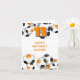 Este cartão de aniversário de tema de futebol é totalmente personalizável e apresenta clusters de bolas de futebol laranja, preto e branco nas bordas superior e inferior na frente e um cluster de solteiro de dentro da placa - personalize o texto na frente e no dentro - por katz_d_zynes