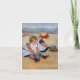 Um retrato encantador de duas crianças brincando na areia incorporando a atitude naturalista prevalente na arte da época. Dentro inferior: saudação de aniversário que você pode personalizar.