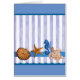 Cor d'água original pintada por Sandra Gale, com peixes-estrela, cavalos-do-mar, tartarugas e conchas sobre um fundo de listras azuis verticais translúcidas. design de excelente para o Verão, casas de praia, bangalôs ou para quem ama a praia, o oceano ou o peixe.