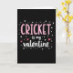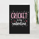 This greeting card features the phrase “CRICKET is my valentine” centered on a deep black background, turning a favorite sport into a sweet, affectionate shout-out 🥰. “CRICKET” sits at the top in rounded bubblegum pink letters, large and eye-catching like a happy announcement to someone special. Just beneath it, “is my” appears smaller in white, neatly tucked in as a quiet lead-in. The word “valentine” follows in white, written in a flowing cursive style that softens the look and adds a romantic touch ❤️. Around the text, tiny hearts and dots are sprinkled like confetti, suggesting a warm, teasing closeness between giver and receiver. The decorations alternate between pink and white, with a mix of filled shapes and outline-only hearts that keep the space lively without crowding it. The strong contrast of bright lettering against the dark backdrop makes every word easy to spot. Small pink and white hearts and dots float near the corners and along the sides, lightly framing the message.