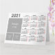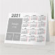 Cartão de saudação dobrado personalizável com modelo de calendário 2020 e local para três imagens quadradas