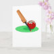 Um desenho animado bonito de uma bola de críquete segurando uma bola de críquete. Imagem disponível em vários presentes e produtos. Postais. Paisagem.