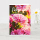 Celebre um aniversário muito especial com o Crisântemo, a flor de nascimento de novembro. Aqui está uma bela imagem fotográfica dessas magníficas flores cor-de-rosa em flor ao ar livre, colocadas contra um fundo natural de folhagem verde. Essas flores antigas são originárias da China, aproximadamente 3500 anos atrás, e eram usadas como erva florida em alimentos - notadamente caldos e saladas - e para dar sabor ao chá. Essas flores requintadas simbolizam amor, alegria e longevidade. Um presente perfeito para qualquer pessoa que ama flores ou a natureza. O cartão fica em branco por dentro para que você escreva sua própria mensagem pessoal.