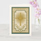 Este cartão de cumprimentos religiosos elegante de 5" x 7" apresenta um belo crucifixo com o cristograma IHS dourado e raios de sol, simbolizando o nome de Jesus. O design é emoldurado por uma borda decorativa dourada ornamentada com motivos florais e lírios brancos delicados na base, tudo isso sobre um fundo creme com sotaques verdes ricos.