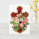 A cruz vermelha e dourada com uma profusão de flores bonito foi cuidadosamente retocada para trazer os maravilhosos detalhes. Há Páscoas brancas Lillies e rosas rosas. Um cartão cristão maravilhoso para você personalizar.