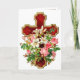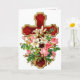 A cruz vermelha e dourada com uma profusão de flores bonito foi cuidadosamente retocada para trazer os maravilhosos detalhes. Há Páscoas brancas Lillies e rosas rosas. Um cartão cristão maravilhoso para você personalizar.