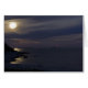 Essa imagem da noite fotográfica iluminada pela lua de longa exposição colorida foi tirada na praia Crystal Crescent, perto da pequena comunidade pesqueira de Sambro, na província atlântica canadense de Nova Escócia, localizada na costa leste do país norte-americano do Canadá. A lua no dramaticamente turvo céu ilumina a costa costeira como a luz do pequeno barco reflete no oceano Atlântico. Isto foi tirado no Verão do médio em agosto durante a festa dos Dias do Semestre da Sou.