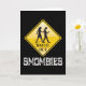Um design legal e engraçado com duas pessoas caminhando assistindo em seus smartphones como zombies e a citação "Cuidado com os Smombies".