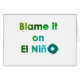 Tem problemas? Precisa de um bode expiatório? Culpa El Nino! Quando a Mãe Natureza ataca tornados, furacões, secas e tempestades de inverno, os meteorologistas olham para o oceano Pacífico e culpam El Niño - por que você não pode? Excelente ecológico da língua design para o Dia da Terra, mudança climática, problemas de namorada/namorado, e para aquele homem do tempo em sua vida.