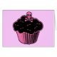 Este cupcake cor-de-rosa bonito tem um crânio nele em vez de uma cereja.