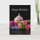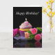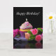 Cartão Cupcake de aniversário borrifado com Rosas de vela