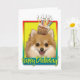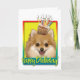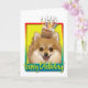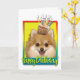 Celebrar um aniversário com este Cartão de Saudação de Cão Pomeraniano. Com um cupcake balanceado na cabeça, este design pode trazer um sorriso e risadinhas! BTW, Este design tem várias versões, com diferentes cores de fundo. Há também um convite para uma versão do Partido.