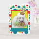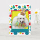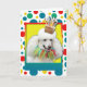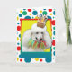 Celebrar um aniversário com este Cartão de Saudação de Cachorro Branco. Com um cupcake balanceado na cabeça, este design pode trazer um sorriso e risadinhas! BTW, Este design tem várias versões, com diferentes cores de fundo. Há também um convite para uma versão do Partido.