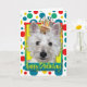 A partir de uma solicitação do Cliente, este Westie chamado Tank está agora disponível. Esta é a foto fornecida pelo cliente que eu consegui extrair e colocar nesta design. Por favor, contacte-me se quiser que o seu próprio Pet seja colocado num dos meus designs. Com um cupcake balanceado na cabeça, este design pode trazer um sorriso e risadinhas! BTW, Este design tem várias versões, com diferentes cores de fundo. Há também um convite para uma versão do Partido.
