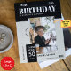 Celebrate a milestone in style with this custom Happy Birthday photo magazine cover card, designed to turn your favorite memories into a bold, magazine-inspired keepsake. Perfect for a 50th birthday invitation or any special celebration, the large 8.5 x 11 format offers plenty of space for a striking photo collage and personalized headlines. Simply add your image and details to create a modern photo birthday card that feels trendy, fun, and completely unique for him or her. This editable birthday card template makes it easy to design a funny birthday magazine card that guests will remember long after the party.