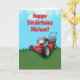 This greeting card with an adorable red lawn mower design will be a hit with the child receiving it. Personalize the front and inside message with the fully customizable text fields.