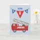 Cartão Custom Name and Age, 6th Birthday Son, Firetruck