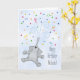 Cute birthday card features an illustrated, joyful elephant showering colorful confetti into the blue sky. Customize the front for child's name to make a truly personalized card. This popular jungle animal is sure to bring a smile to any child's face!