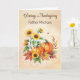 A meaningful Thanksgiving design featuring glowing pumpkins, golden sunflowers, and autumn leaves in watercolor tones. The front includes a customizable name area, allowing you to personalize it with your priest’s name for a heartfelt and faith-filled message of appreciation. This design captures the spirit of gratitude and thanksgiving through its gentle imagery and spiritual warmth—perfect for expressing thanks to a priest at this blessed time of year.