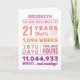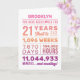 Personalized “You Have Been Loved For 21 Years” birthday card featuring milestone numbers—years, months, weeks, days, hours, and minutes. Add the recipient’s name for a custom touch and edit the inside message to make it your own. A unique, heartfelt birthday card perfect for a 21st birthday celebration.