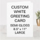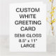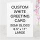 Custom printed personalized LARGE 8.5" x 11" PORTRAIT SEMI-GLOSS (PHOTO) GREETING CARD Blank Template. Design, create, make your own. Your photo, image, text, logo, graphics in full color CMYK print on each side of the card - inside and out . Printable area on the back of the card is 5" x 7". Standard white envelopes included. SEMI-GLOSS: A thin, smooth, bright white paper with semi-gloss finish designed for photo printing with the optimal color vibrancy. 40% recycled post-consumer content. Made and printed in the USA. Best for wedding, birthday, anniversary, retirement, get-well-soon, and Christmas cards.