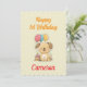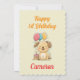 Happy 1st Birthday card for girl or boy with happy puppy, cake and balloon. Personalized with the birthday kid's name. Cute rhyme and text on back, personalize and change as you wish. Instant download possible. Happy first birthday to a special child! - Boy version in blue and girl version in pink also available.