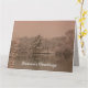 This special holiday card features a vintage sepia-toned photograph of gorgeous evergreen trees by a calm lake on a snowy winter day. It captures the peace and quiet that comes with a fresh blanket of snow, turning the scene into a magical Winter Wonderland. Look closely, and you’ll notice the snow gently falling, adding unique and enchanting touches to this serene setting. The card includes a customizable typography field for a holiday greeting or other personal message. The photograph was taken in Illinois, USA, on a winter morning.
