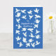 A Customizable Greeting Card for Passover, with white doves on a blue background. The inside greeting, which you can change or delete, is 'Happy Passover'. From a handpainted paper collage by Judy Adamson.