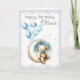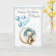 A cute personalized birthday card for a boy featuring a teddy bear sitting on the moon. This playful and gentle design is perfect for celebrating a little boy’s birthday. The card includes the text “Happy Birthday” and can be customized with his name, making it a meaningful keepsake for parents and loved ones. Ideal for boys’ birthday parties, baby boy birthdays, and early childhood celebrations.