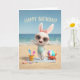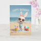 Celebrate a fun and sunny birthday with this adorable beach-themed card featuring a cheerful bunny in a polka dot swimsuit and stylish sunglasses. Surrounded by sand, seashells, and playful beach details, this bright and happy design is perfect for anyone who loves summer, sunshine, and a little extra cuteness on their special day.